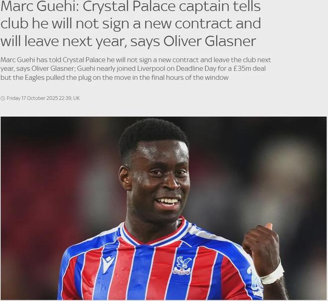 水晶宫主帅格拉斯纳确认,格伊已经表态自己不会续约,并且将在明年自由转会离队。实际上,格伊目前的合同明年夏天到期,因此他在一月份时就能自由和国外的俱乐部草签协议。